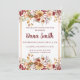 Ring in the Fall shower season with this elegant and rustic Autumn wildflower shower invitation! A bouquet of red, yellow, purple, and peach flowers surround the text along with a rose gold coloured rectangle frame to bring a hint of vintage to this invite. The text features a combination of traditional and cursive fonts for a look that is unique and modern as well as classic and timeless! This invite gives the right amount of natural breeze beauty found in Spring and Summer and combines it with a beautiful collection of warm, Fall colours for an invitation that is perfect for any bridal shower, wedding shower, or baby shower!