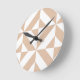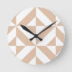 Warm Beige Geometric Deco Cube Pattern Round Clock