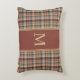Warm Brown and Cream Plaid Monogram Accent Pillow