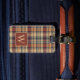 This rustic inspired monogrammed luggage features a warm plaid pattern in shades of browns and creams. Personalize the monogram on the front and contact information on the back with your choice of initial and special text.