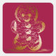 A little gingerbread man illustration is designed on a background of colour. The gingerbread man design is a gradient, warm copper colour.