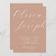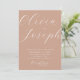 Add a romantic touch to your celebration with this warm dusty peach minimalist wedding invitation. The soft peach background and elegant modern calligraphy create a refined yet welcoming design, ideal for romantic, boho, rustic, summer, or spring weddings. The back includes space for your photo and a QR code to link guests to your wedding website or RSVP. Available in both printed format and digital download. This versatile design pairs beautifully with warm, neutral, or floral palettes.