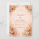 Inspired by rich autumn florals and romantic seasonal palettes, this wedding design features layered roses, dahlias, and soft foliage in warm rust, blush, and cream tones. The painterly floral border frames the layout beautifully, creating a refined yet inviting atmosphere that feels both classic and celebratory.