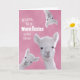 An adorable humourous birthday card that wishes someone the "warm fuzzies" on their birthday. Three fluffy, white llamas/alpacas drop in on this pink card from all angles and directions hoping for a laugh. Perfect for anyone who loves animals or just plain cuteness.