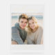 This wedding sign features a warm and inviting beach scene with two individuals sitting closely together, capturing the essence of relaxation and celebration. The design is framed by an elegant black border with gold cursive text at the top reading "welcome," while the bottom showcases customizable names and date in a simple serif font. The colour palette includes soft greys, beiges, and blues from the natural setting, complemented by striking gold accents on the black background. With its modern minimalist aesthetic, this sign conveys a joyful and refined mood, perfect for welcoming guests to a special occasion.