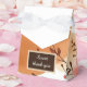 Add a personal touch to your wedding favours with the "Warm Peach Boho Florals" favour boxes. Designed with soft peach and earthy floral accents, these boxes reflect a chic boho style perfect for an autumn wedding. Created with generativecontent, they offer a unique and elegant packaging solution for your special day.