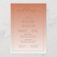 This wedding program features a warm, peach gradient background that transitions from deep coral to pale pinkish-beige. The design is elegantly simple, with a cursive script for the welcoming message and a classic serif font for the ceremony details, creating a harmonious blend of formality and intimacy. Customizable placeholders allow for personalization with names and dates, while the clean layout ensures readability. Perfect for couples seeking a sophisticated yet inviting aesthetic, this program captures the celebratory mood of their special day.