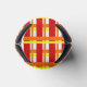 This can cooler has an Art Deco design of a plaid with thick and thin lines in red, orange, and yellow.