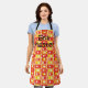 This apron has a mid-century modern design of rectangles stacked three thick in warm colours of red, orange, gold, and yellow on a field of white. Want the same design with different colours? Message me.