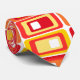 This necktie has a mid-century modern design of rectangles stacked three thick in warm colours of red, orange, gold, and yellow on a field of white. Want the same design with different colours? Message me.