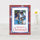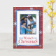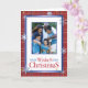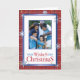 Send Christmas greetings with this elegant folded photo card. It features falling snowflakes, red and blue holiday borders. Personalize by adding your photo, names, year and message.