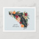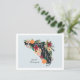 Send greetings from the sunshine state with these charming postcards featuring a silhouette map of the state of Florida adorned with oranges, lush greenery, and tropical flowers on a pastel sky blue background with a white border. "Warm Wishes" appears in white hand lettered typography inside the shape of the state, along with your family name or choice of greeting. Add a custom pre-printed message to the back if desired.