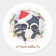 Christmas background with lettering and a cute racoon Classic Round Sticker .