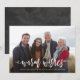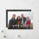 Modern holiday card featuring the phrase "warm wishes" in a white handwritten script. Your photo is displayed behind. The back is distressed black but can be changed if desired. Simply delete the black layer and select a colour from the palette or use your own hex code.