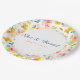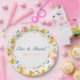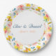 Enjoy a warm watercolor wedding theme with the addition of these pretty modern floral paper plates. Customize your order with the name or statement of your choosing. Add a date if you want! Yellow and pink flowers adorn these plates, with a unique design from an original watercolor painting. Hints of blue and leaves of green add Spring and Summer vibe to the design. Great for Summer parties, garden parties, or baby showers, too! Check out the other party supplies in this Collection.