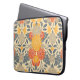 This laptop sleeve has flowers and leaves in shades of yellow, orange, and blue-grey on a cream-coloured background.