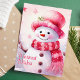 Warmest Wishes Adorable Pink Snowman Holiday Card