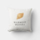 Modern Christmas throw pillow featuring a simple and fun design with a seashell along with the greeting "Warmest Wishes".