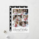 Modern holiday card featuring 6 of your photos arranged in a collage layout. "Warmest Wishes" is displayed in a handwritten black script with your family name and the year shown below. The multi-photo holiday card reverses to display a black and white Christmas tree pattern.
