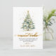 Elegant Modern Calligraphy Warmest Wishes Script Christmas Tree Non Photo Christmas Cards. This festive simple Holiday cards features a watercolor christmas tree with decoration gold balls and confetti and a „Warmest Wishes” greeting text which is written in a nice hand lettered font type in gold and white. On the reverse side golden glitter snow or sparkling gold confetti on dusty green background. This festive Custom Personalized Cards are a great way to remind loved ones that you're thinking of them this Winter Holiday Season.