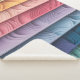 Multi-layered color gradients in relief bands, each band containing subtle batik motifs (waves, leaves) embossed into it.
