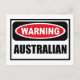 Warning AUSTRALIAN Postcard you can customize at www.WarningSignShirts.com and features a red and black warning sign and AUSTRALIAN in bold black letters to warn the world. You can also customize your own warning sign Postcard with the text you want.