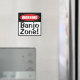This funny magnet reads: Warning Banjo Zone! This is the perfect gag gift for a banjo player or anyone who likes bluegrass or old timey music. Banjo players are often the butt of jokes, and this humourous magnet fits right in. Great for the musician with a sense of humour.