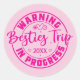 Warning Besties Trip in Progress Magenta on Pink Classic Round Sticker