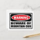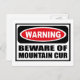 Warning BEWARE OF MOUNTAIN CUR Postcard you can customize at www.WarningSignShirts.com and features a red and black warning sign and BEWARE OF MOUNTAIN CUR in bold black letters to warn the world. You can also customize your own warning sign Postcard with the text you want.