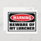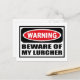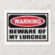 Warning BEWARE OF MY LURCHER Postcard you can customize at www.WarningSignShirts.com and features a red and black warning sign and BEWARE OF MY LURCHER in bold black letters to warn the world. You can also customize your own warning sign Postcard with the text you want.
