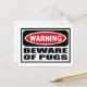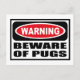 Warning BEWARE OF PUGS Postcard you can customize at www.WarningSignShirts.com and features a red and black warning sign and BEWARE OF PUGS in bold black letters to warn the world. You can also customize your own warning sign Postcard with the text you want.