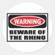 Warning BEWARE OF THE RHINO Sticker