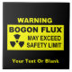 A black and yellow warning sign with text reading, "WARNING, BOGON FLUX, MAY EXCEED SAFETY LIMIT." A radioactive material warning symbol also appears. The bogon is an elemental particle which carries the property of bogosity, or being bogus (i.e., fake of bad). All humans are natural low-level bogons emitters. Emission levels fluctuate over time. Politicians, other individuals such as used car salesmen, are high level sources of bogons. When such individuals emit extremely high levels of bogons, as when making campaign promises, a bogon flux may occur. A bogon flux can be very dangerous to those in the area. Bogon was originally hacker jargon having to do with bogus addresses on a computer network.