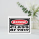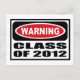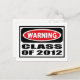 Warning CLASS OF 2012 Postcard you can customize at www.WarningSignShirts.com and features a red and black warning sign and CLASS OF 2012 in bold black letters to warn the world. You can also customize your own warning sign Postcard with the text you want.