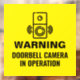 A window cling sign for households with a smart doorbell. The design features a graphic of a doorcam with the wording “Warning Doorbell Camera In Operation”. An eye-catching design with black text on a yellow background.