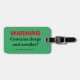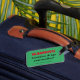 Funny way to distinguish your luggage - whether check-in or carry-on, wherever you go. Gets attention by saying "Contains Drugs and Needles" but refers to as "Medicines and a Sewing Kit".