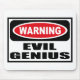Warning EVIL GENIUS Mousepad you can customize at www.WarningSignShirts.com and features a red and black warning sign and EVIL GENIUS in bold black letters to warn the world. You can also customize your own warning sign Mousepad with the text you want.