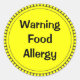 Plain sticker with text "Warning Food Allergy" You are able to edit the text and background colour during checkout.
