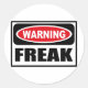 Warning FREAK Sticker you can customize at www.WarningSignShirts.com and features a red and black warning sign and FREAK in bold black letters to warn the world. You can also customize your own warning sign Sticker with the text you want.