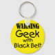 Warning Geek with Black Belt Keychain