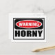 Warning HORNY Postcard you can customize at www.WarningSignShirts.com and features a red and black warning sign and HORNY in bold black letters to warn the world. You can also customize your own warning sign Postcard with the text you want.