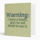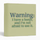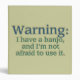 This reads, "Warning: I have a banjo, and I'm not afraid to use it." For the banjo player in your life...or, you can bluff with it, I suppose. Most folks will back down if you threaten to play a banjo. (Just kidding. We love banjos, and banjo players. I even married one.)