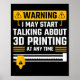 Warning I May Start Talking About 3d Printing Tech Poster
