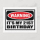 Warning IT'S MY 21ST BIRTHDAY Postcard