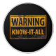 WARNING KNOW-IT-ALL - Metal Danger Caution Sign Ceramic Knob