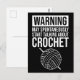 Warning - May Spontaneously Start Talking About Crochet. This funny crocheting lover accessory is a great idea for the crocheter in your life. Perfect for women, men, boys, girls, teens & kids who love to crochet & craft, and love yarn! If crocheting is your hobby, you're a yarn lover and you love crafting with a crochet hook and balls of yarn, then this crocheter design is for you! Includes a graphic of a crochet hook with a ball of yarn.