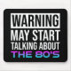 Warning May Start Talking About The 80’s. This funny retro Gen X accessory would be a cool gift for men & women who grew up during the 1980’s, and anyone who loves to talk about the eighties. Perfect for a member of Generation X or Gen Xers. This vintage design celebrates nostalgia for 80s films, movies, music, bands, and tv shows. If you love to talk about the 1980s and discuss the 80s era, this design is for you!