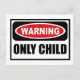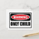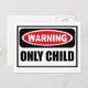 Warning ONLY CHILD Postcard you can customize at www.WarningSignShirts.com and features a red and black warning sign and ONLY CHILD in bold black letters to warn the world. You can also customize your own warning sign Postcard with the text you want.