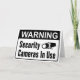 Something we are used to seeing is security cameras and this design is a sign warning you they are in use. This design is a warning sign that says warning security camera in use. It is like the signs you would be used to seeing everyday. This warning security camera in use design looks great on these greeting cards