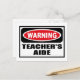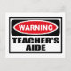 Warning TEACHER'S AIDE Postcard you can customize at www.WarningSignShirts.com and features a red and black warning sign and TEACHER'S AIDE in bold black letters to warn the world. You can also customize your own warning sign Postcard with the text you want.